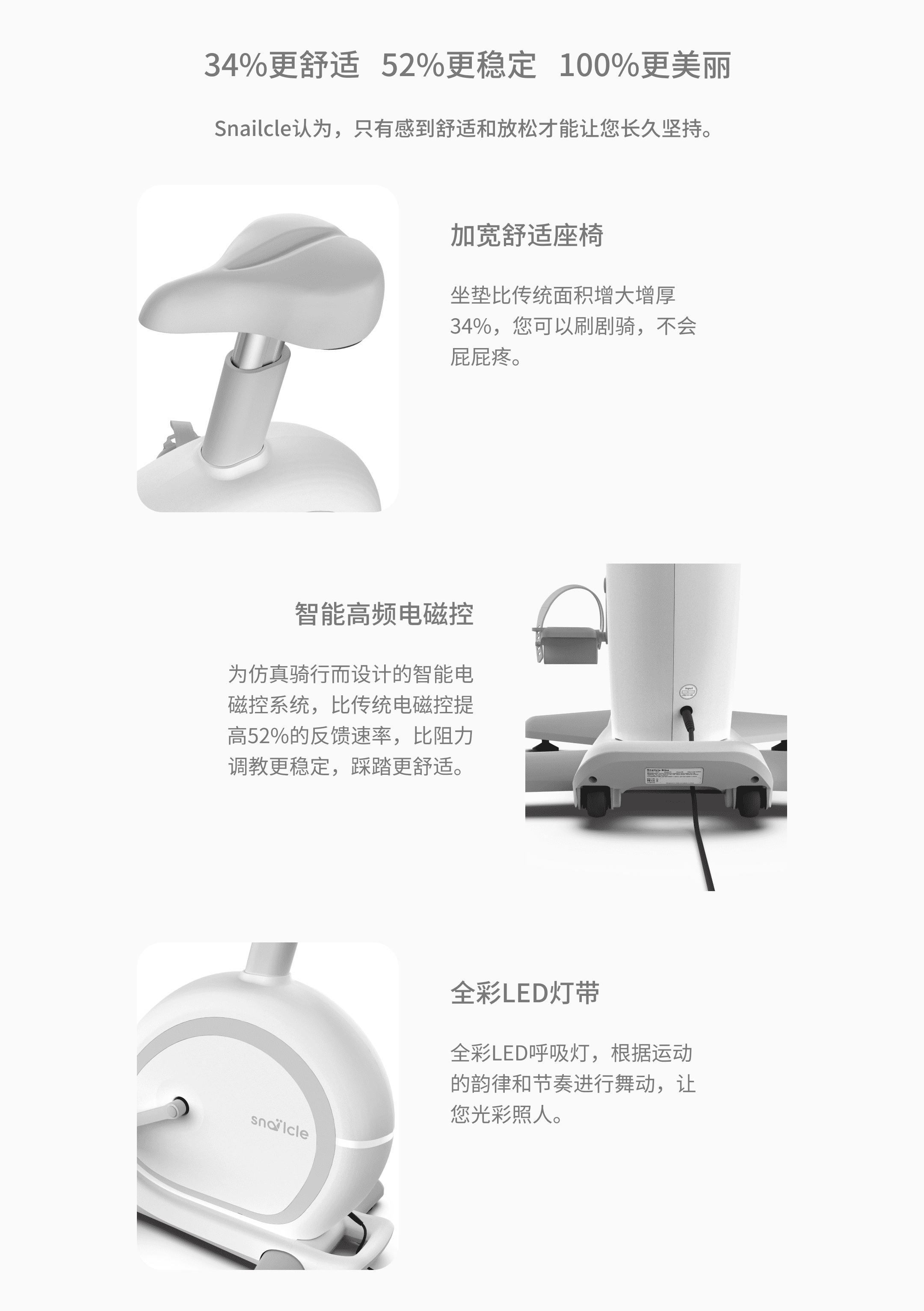 产品基本参数:外形小巧可爱,智能升降,AI姿态识别,骑行仿真。采用先进的动力学仿真引擎,可以计算出车在不同坡度、路面的影响下的速度。智能高频电磁控,比传统电磁控提高52%的反馈速度,比阻力